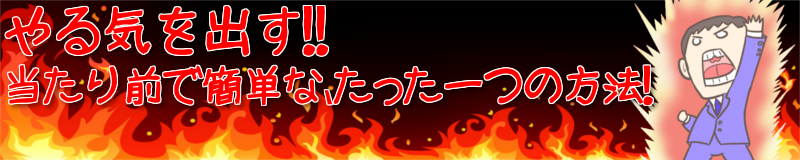 やる気が無い状態で行動する方法 これをやろうと思ってもなかなか行動できない毎日…… そんな負の連鎖を打ち切る方法を教えます。 |